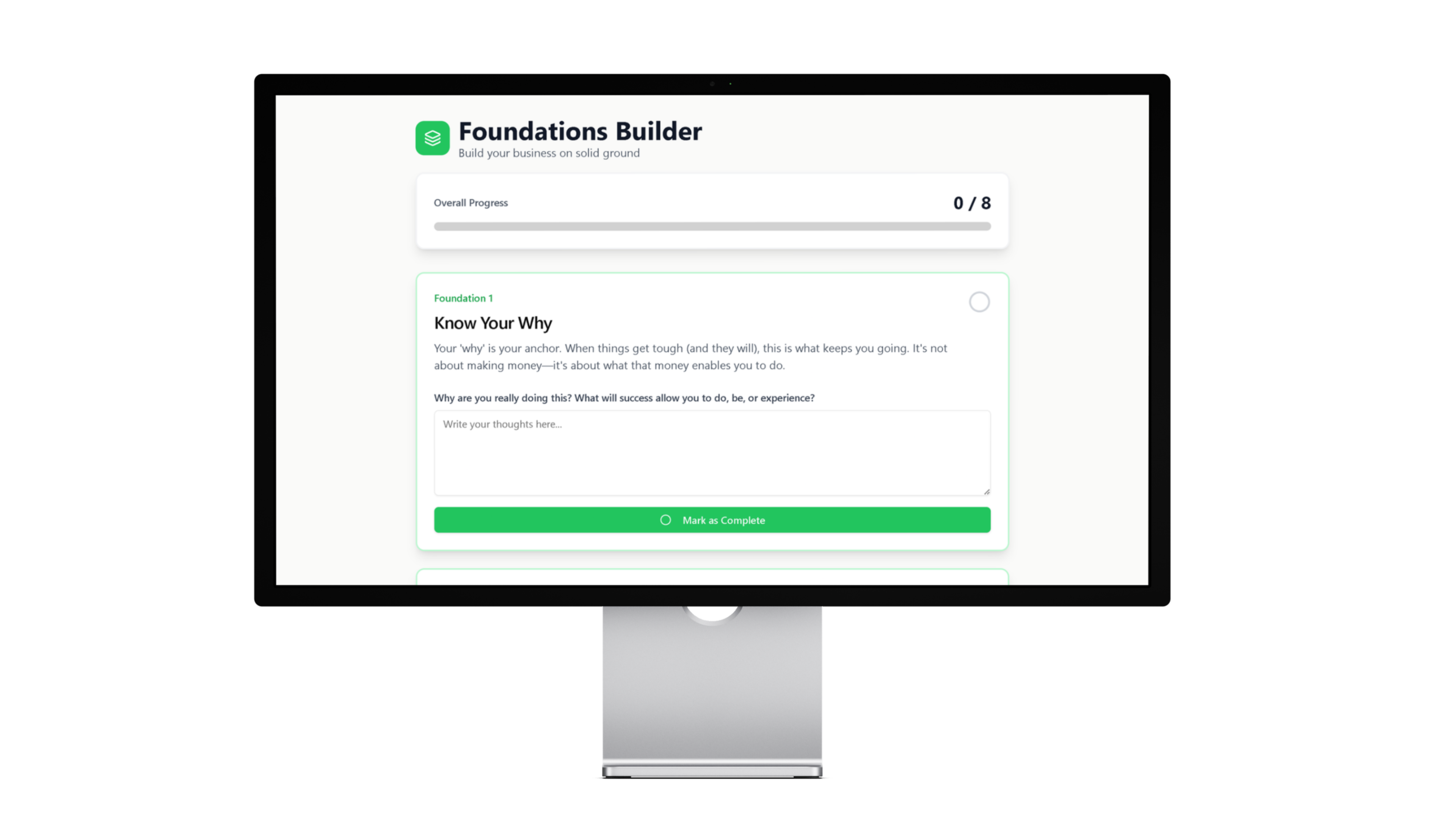 From the moment you enter the app, the Onboarding AI:- guides you through getting started- helps you set up your business profile- recommends coaches- guides you through foundations- shows you what to do next- explains each tool- helps you avoid mistakes- gives you momentum from day oneNo more overwhelm. No more guessing. Launch Strong guides you clearly so you can pour your energy into what really matters — growing a business that lasts.