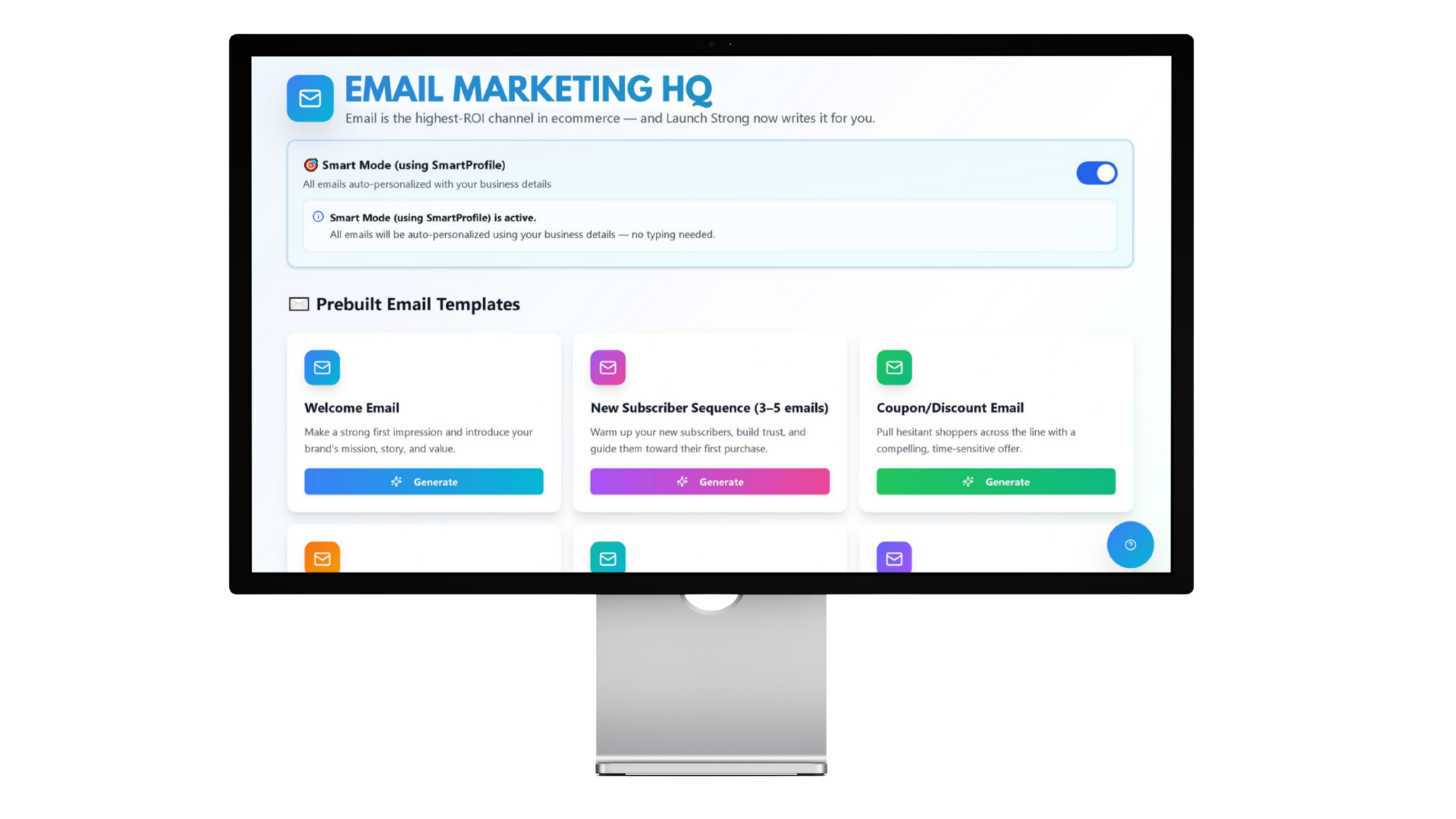 Email Marketing HQ isn’t just an AI writer — it’s your entire email team in one place.With SmartProfile, every email is crafted automatically in your voice, for your niche, and speaks directly to your ideal customer.Welcome emails, subscriber sequences, sales emails, discount blasts, newsletters — all generated in seconds.No more templates that kind of fit.No more guessing what to write.No more spending hours rewriting the same paragraph.Agencies charge $500–$2,000 for a single sequence.Launch Strong gives you unlimited, fully personalised emails — instantly.This is email marketing done right.Done fast.Done for you