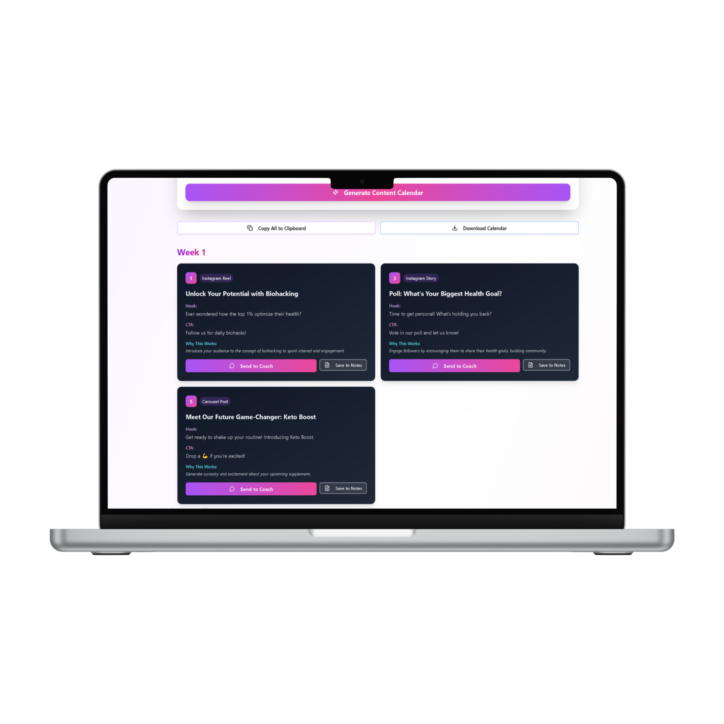 ✔ “Send to Content Coach” button for instant refinement